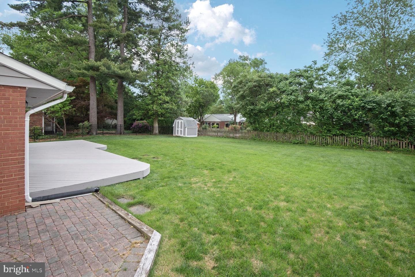 The backyard is flat with lush green grass. An expansive deck provides great space for outdoor living. Store your bikes and other goodies in the large shed.